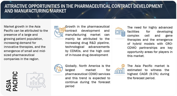 - Globally, North America is the largest market for pharmaceutical CDMO services and this trend is expected to continue during the forecast period
