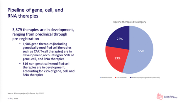 Interestingly, the Gene, Cell, & RNA Therapy Landscape Q1 2022 Quarterly Data Report from The American Society of Gene & Cell Therapy (ASGCT) and Informa Pharma Intelligence, speaks volumes about outsourcing without ever mentioning the word.