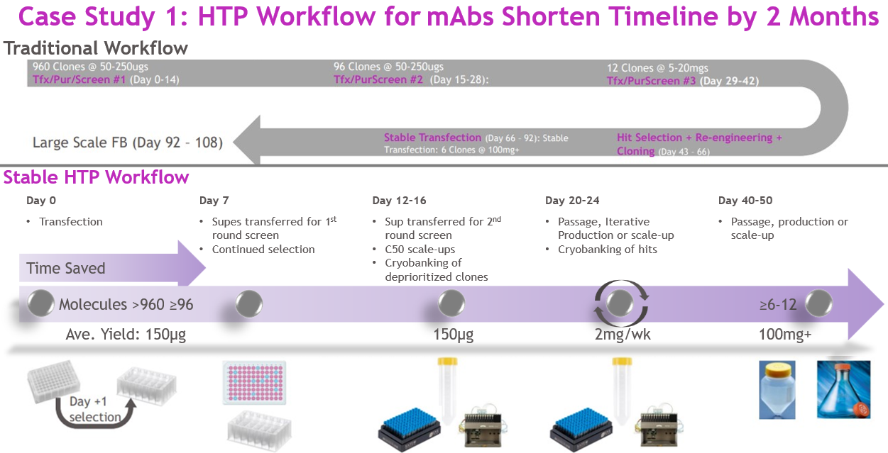 Collectively, these case studies demonstrate that the BMS HTP stable CHO platform is not just a speed enabler — it is a comprehensive, flexible, and scalable solution that can handle diverse molecule formats, integrate optimization, and deliver high-quality material from microgram to gram scale within compressed timelines.