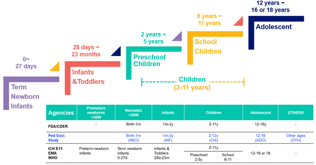 Pediatric patients are classified as individuals under 16 or 18 years of age (depending on the regulatory agency), and are further divided into five subgroups according to ICH guidelines (Fig. 2).