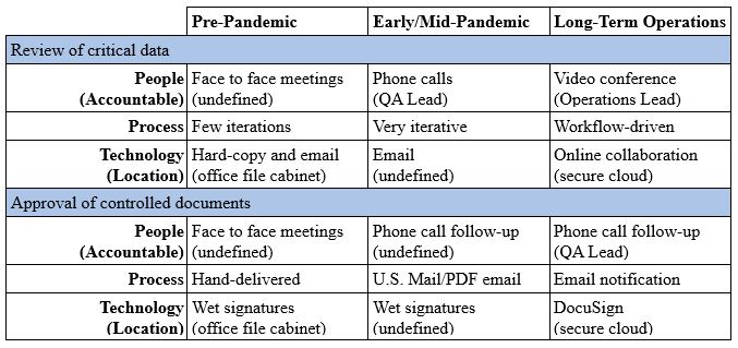 The virtual working environment required during the pandemic (the “new normal”) will have a lasting effect on data integrity (both good and bad). To ensure maximum value and reduce data integrity risk, assess what has changed since before the pandemic, determine what should be instantiated as sustainable processes (i.e., define use cases), and make corrections to data governance practices accordingly (e.g., a risk based approach).