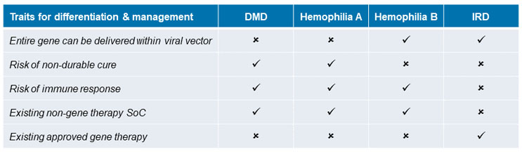 Figure 2: Gene therapy traits impacting product differentiation by indication.