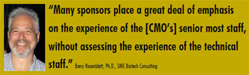 Rosenblatt: Many sponsors place a great deal of emphasis on the experience of the senior most staff, without assessing the experience of the technical staff. Since quality in any organization should come from all segments of the organization, not just from the top, this tends to overestimate the quality of the CMO. It is commonly utilized as a selling point for the CMO, embedded in their sales presentations.