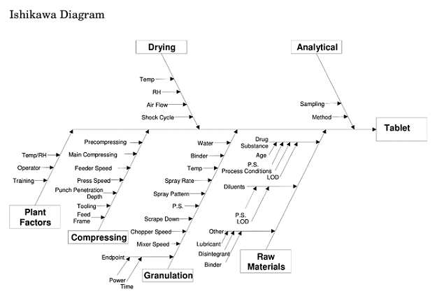 - Use an Ishikawa Diagram. Fishbone diagrams, such as this one from ICH Q8(R2),3 are incredibly helpful in identifying possible causes. Remember to use categories appropriate to your situation.