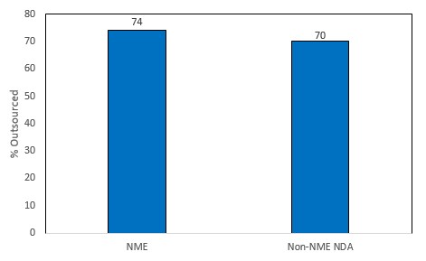Overall, 57 NDAs were manufactured by contractors in 2018. In 2018, 51 percent of NMEs were outsourced, compared to 33 compared of non-NME NDA products.