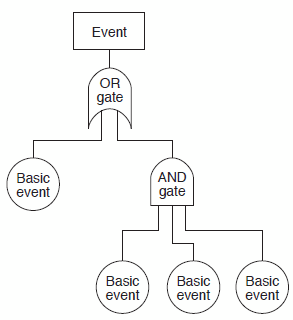 Fault tree analysis (FTA) evaluates system (or subsystem) failures individually, represented pictorially in the form of a branching tree of various fault modes. Each level of the tree represents combinations of fault modes that are described with logical operators (e.g., AND, OR). A potential area of use for FTA can be to establish the pathway to the root cause of the failure. FTA can be used to investigate complaints or deviations to fully understand their root cause and to ensure that intended improvements will resolve the issue and not lead to other issues. FTA is an effective tool for evaluating how multiple factors affect a given issue. The output of an FTA includes a visual representation of failure modes. It is useful both for risk assessment and in developing monitoring programs. Figure 5 depicts a basic FTA.