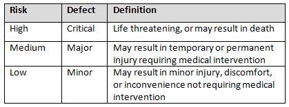 Generally, I prefer to use three levels of risk outputs that can be provided by a FMEA: high, medium, and low. Using three levels provides separation between each level, which facilitates the determination of the risk level. Table 1 provides an example of risk level definitions. It should also be stated that when determining the risk level, it is generally best practice to be conservative and when in doubt assign a higher level.