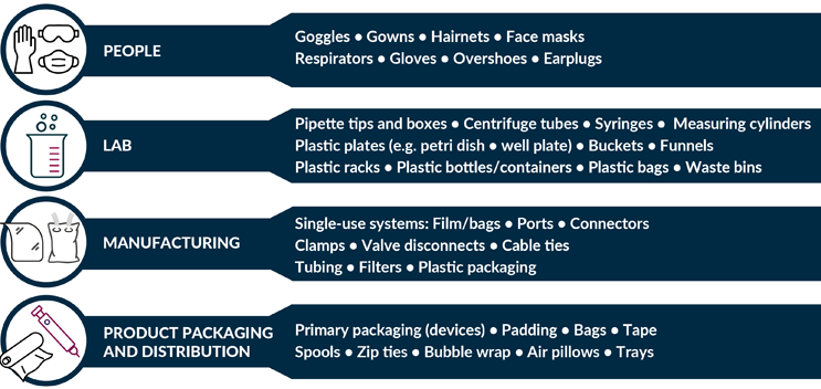 When we considered the scope of single-use plastics used in biopharmaceutical production, we identified four distinct domains (see Figure 1).