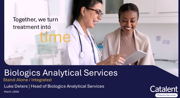 A biologics analytics leader showcases development, testing, and characterization capabilities, emphasizing quality, regulatory compliance, and integrated support from discovery to commercialization.