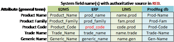 Let’s extend our example by considering the product code metadata attribute. The attribute may be entered by free text (no control) or by selection from a predetermined list or drop-down. Free text is the bane of data integrity objectives, as it provides little to no control of the metadata being entered, and therefore provides risks to the value of the metadata (think of how many versions of your name exist on your credit cards or bank accounts and trying to group them by consistent name). Using predetermined lists or drop-downs is a far more preferred method, but sourcing the data for the predetermined list or drop-down becomes the principle opportunity and frequent source of mistakes when it comes to metadata and data integrity.