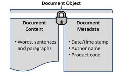 Figure 1: Simplified example of the relationship of document content to document metadata, together making up the document object
